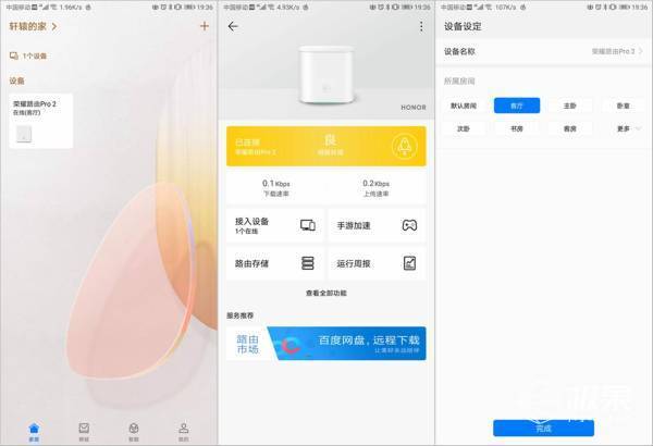APP界面对比:华硕RT-AC86U界面的动画、色彩更炫,看起来更有动感,也更有科技感。而荣耀PRO2的界面简单,显得有些单调。