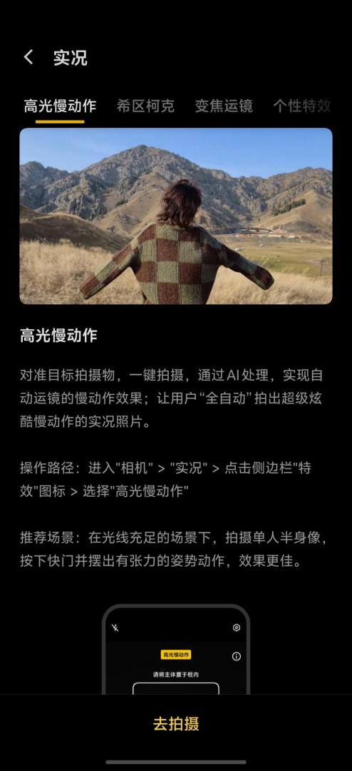 vivo S50的Live影像功能是其影像系统的另一大特色。它不仅提供了清晰流畅的Live画质,还通过多种创意运镜和滤镜功能,让拍摄变得更加简单有趣。其中新增的“高光慢动作”功能,能够自动完成从正常速度到慢动作的丝滑过渡,并同步变焦放大主体,轻松拍出具有明星同款高光时刻的慢动作大片。比如拍摄朋友转身瞬间,画面从全身缓缓推进至面部特写,慢动作定格微笑——仪式感拉满,无需剪辑。