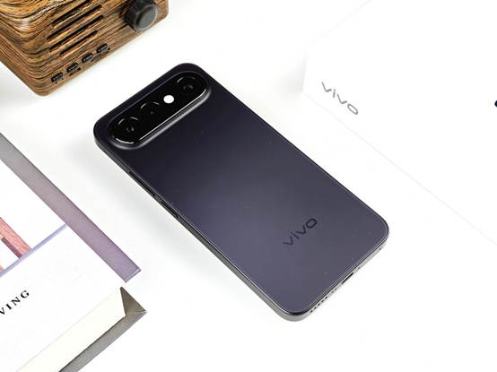 如果说屏幕是理性的一面,那么背部就是vivo S50系列感性表达的舞台。此次我们拿到的是vivo S50 Pro mini的“深空黑”配色版本,采用了缎面柔光玻璃,触感如丝缎般顺滑,且不易沾染指纹——即便刚涂完护手霜拿起手机,也不会留下油腻痕迹。