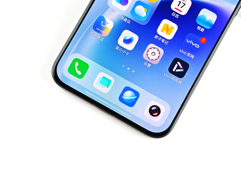 机身正面,vivo S50 Pro mini配备一块6.31英寸的AMOLED直屏,点亮屏幕的第一瞬间,最令人印象深刻的就是其超高的屏占比,几乎做到“无界”观感,视野仿佛直接延伸出去,沉浸感极强。
